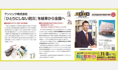 11月8日(土)に岐阜県庁で開催される「防災教育フェア」に、弊社アンシンク株式会社が出展いたします。 地域に根ざした防災モデル「防災 奥の細道」や、防災担当者を社内で孤立させない防災BPOサービス(ビジネス・プロセス・ア…
