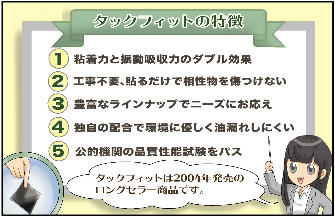 震度7相当にも耐える、貼るだけ簡単タックフィット